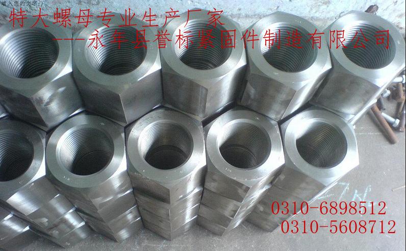 永年譽標緊固件公司,生產:大螺母、特大螺母、超大螺母、異型螺母、特大圓螺母、特大方螺母等各種螺母,聯(lián)系電話:0310-6898512或15100051712