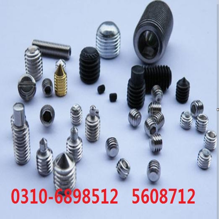 固定機件相對位置用的一種螺釘。使用時,把緊定螺釘旋入待固定的機件的螺孔中,以螺釘?shù)哪┒司o壓在另一機件的表面上,即使前一機件固定在后一機件上。開槽和內六角緊定螺釘用于釘頭不允許外露的機件上,方頭緊定螺釘適用于釘頭允許外露的機件上。螺釘?shù)膲壕o力以開槽螺釘小,方頭螺釘大,內六角螺釘居中。錐端螺釘適用于強度小的機件上;無尖錐端螺釘適用于壓緊面上制有凹坑的機件上,以增加傳遞載荷的能力;平端螺釘(壓緊面應是平面)和凹端螺釘,均適用于硬度較大或經常調整位置的機件上;長圓柱端螺釘適用于管形軸(薄壁件上,圓柱端進入管形軸的孔眼中,以傳遞較大的載荷,但使用時應有防止螺釘松脫的裝置。